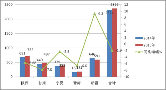 根据最新上牌数据统计分析,截止2014年前7月,西北区域陕西、甘肃、宁夏、青海、新疆五大市场的11-12米公路客车销售了2324辆,比去年同期下降了1.9%,占据了全国11-12米公路客车市场近16.9%的比例。