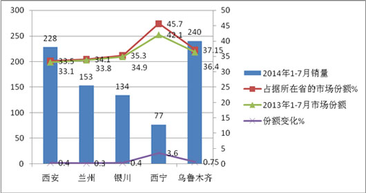 二、2014年前7月西北五大市场11-12米公路客车市场的七个特点解读
