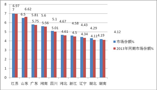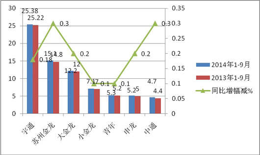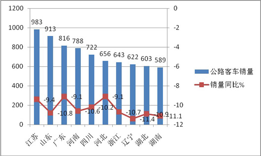 2014年前三季度苏、粤、鲁等 十大区域11-12米公路客车市场六大特点剖析