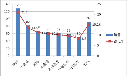 东北市场(含黑龙江、吉林、辽宁)区域辽阔,是中国传统的重工业基地,是中国内地最重要的公交市场之一,有着很大的市场潜力,是各个公交企业竞争的主要阵地之一。因此研究东北区域公交市场可以给公交客车企业如何进入此市场更好制定营销策略提供依据。根据最新数据显示,2015年1月东北区域共销售公交客车606辆,比去年同期的556辆增长9.0%,具体分析呈现下述特点。