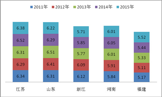 座位客车是6米以上客车市场中的第一大细分市场,约占6米以上客车总销量的65%左右,是构成公路营运的工具的主要载体。江苏、河南、山东、福建、浙江等五大主流区域又是全国座位客车市场的主要代表,约占座位客车市场30%左右的市场份额,具有鲜明的市场特点。因此,研究2015年1月五大主流区域6米以上座位客车市场的特点,对引导座位客车制造企业下一步的市场定位和销售导向具有十分重要的参考意义。