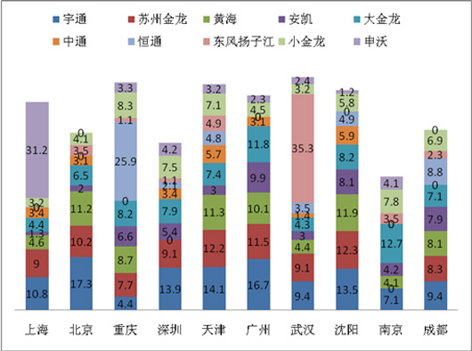 2015年1月北上广深等十大城市大型公交市场剖析
