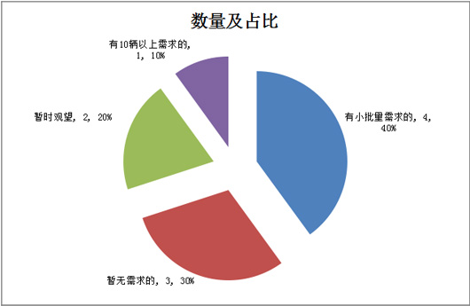 1)有小批量需求(5辆以下)的占据到40%,位居第一