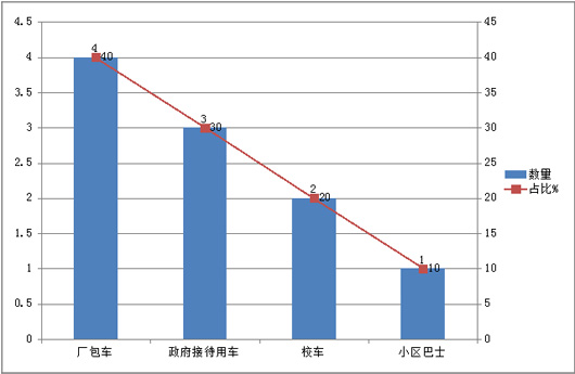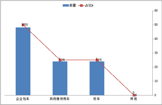 可见,抽样的太原汽车租赁公司中,对6-8米纯电动客车需求最大的目标用途是企业包车,也就是租赁给工厂企业接送职工上下班或者企业接待等用车,其次是政府租赁用车,再次是校车。