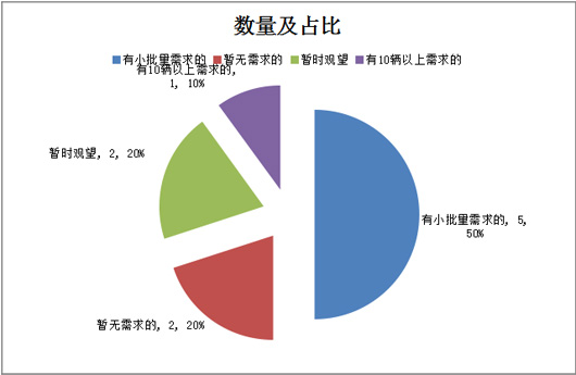 1)有小批量需求(5辆以下)的占据到50%,位居第一