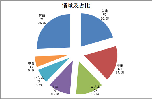 从车管部门监测的数据可知,各主流企业2015年1-2月在四川区域销售的旅游客车统计