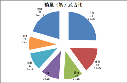 上图表显示,2015年1-2月,四川旅游客车市场玉柴发动机占据超出四分之一的比例,其次是潍柴发动机,进口发动机比较偏好日系,权重最大的是日野发动机。