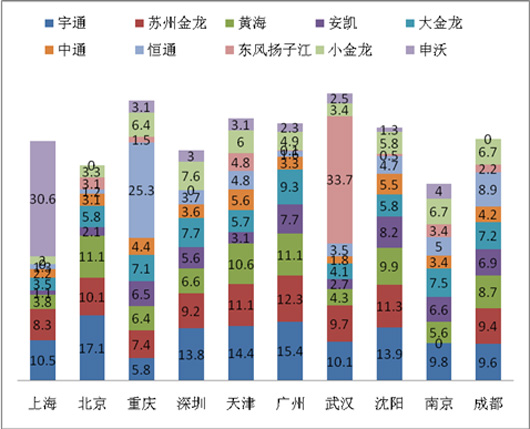 2015年一季度北、上、广、深等十大城市公交市场特点解析