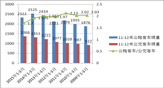 四、2015年1-3月11-12米大型公路客车销量增幅为负的原因分析