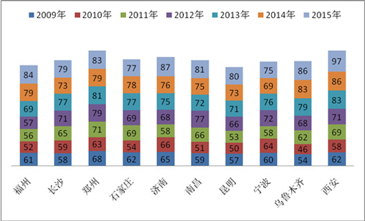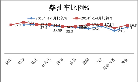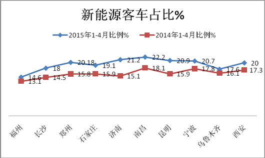 2015年1-4月福州等十大二线城市10-11米公交市场分析