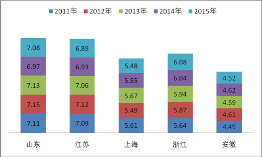 2、山东、江苏、上海、浙江、安徽等区域均遵从了上述同样的而规律。