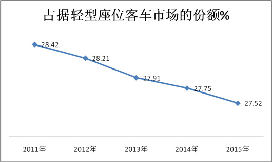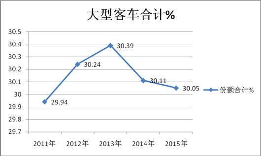 根据上牌数据查阅计算,主流客车企业2015年1-4月及近5年在华东五区域座位客车市场份额与比较表(%)