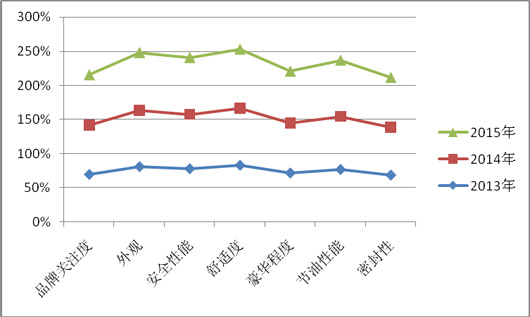 从上图表可以看出:2015年1-4月目标客户关注旅游客车的七项指标均比前两年有所提高。