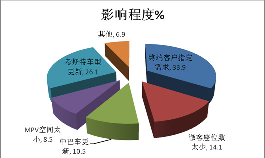 租赁公司用户需求考斯特车型的比例最大的群体是终端客户的指定需求;其次是原有的7米中巴车型使用到期,需要更新车型,再次是目前使用的中巴车型落后需要更新;还有就是及目前正在使用的微客车型空间太小,不受客户青睐,这些都是租赁用户需求7米考斯特车型的内在需求因素。