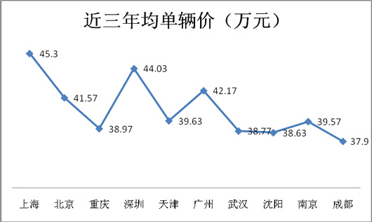 4、近3年来各大城市11-12米公交销量之和看,北京位居第一,上海位居第二,深圳位居第三、广州位居第四,重庆位居第五,天津位居第六,南京位居第七,沈阳位居第八,武汉位居第九,成都位居第十。销量排位基本与城市规模大小相匹配。