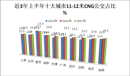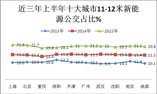 2015年上半年十大一线城市11-12米公交市场四大特点剖析