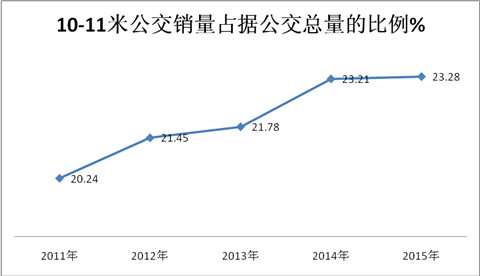 10-11米公交销量占据公交总量的比例% |