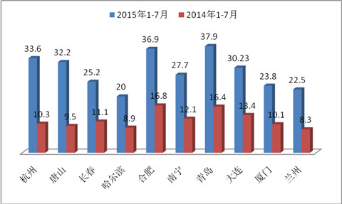 2015年1-7月杭州等十大二线城市10-11米公交调研分析