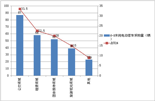 可见,公交领域是太原地区2015年1-7月6-8米纯电动客车需求的重点细分市场,其次是租赁领域,再次是团体接待,第四是旅游观光领域。