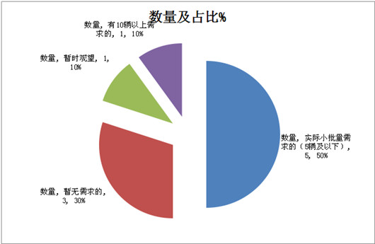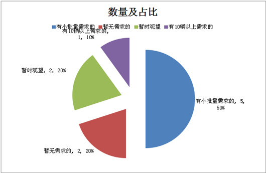 1)有小批量需求(5辆以下)的占据到50%,位居第一