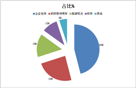 2、需求的用途调研。在抽取的10家汽车租赁公司有明确需求的5家中,按目标市场划分大致情况: