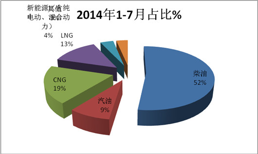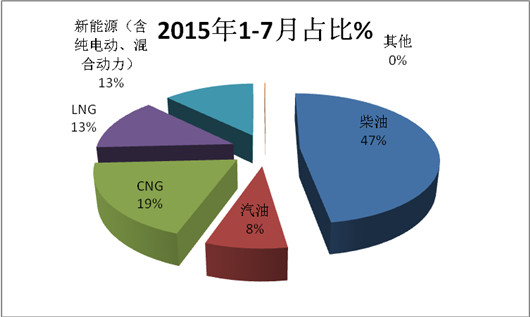 1、柴油仍然是山东2015年1-7月度大中客销量结构中最大的主体动力源,但同比市场比例有所下降(下降了4.8个百分点)。