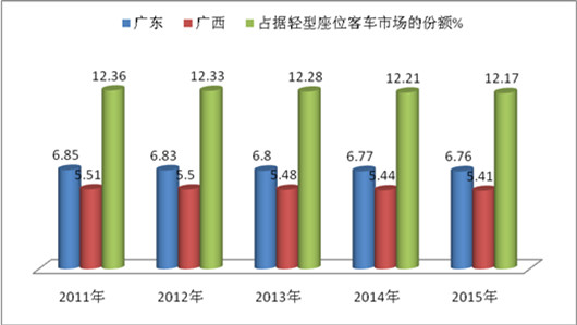 (一)代表轻型座位客车的主力车型的7米以下产品,而非10米以上车型,主要目标市场是在中小城市和乡镇之间运行,但近几年国家的货币政策紧缩,最无力抗衡的就是中小城市和乡镇企业,因此,首当其冲的必然是中小城市和乡镇的座位客车市场,况且华南是国家老少边穷较多的区域之一,早在前些年就着手改造农村公路问题,随着农村道路的不断改善,以轻型客车为主打的农村客运系统已经逐渐走上正轨,市场需求虽然仍大,但市场份额在逐年减少。