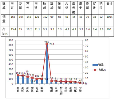 根据最新车管部门统计,江苏13个地市2015年1-7月各地区新能源客车销量表