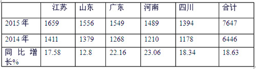 一、2015年前8月五大区域11-12米公路客车总体销售情况概述。根据市场调研可知,11-12米公路客车主要承担运距在200公里以上的本省地级市与地级市之间、地级市与省城之间、县城与省城之间、跨省的城际线路客流等长途运输任务(而11-12米公交车则主要承担着大中型城市市内的主要干线线路的公共交通运输任务)。是公路客车的代表性市场,而江苏、山东、广东、河南、四川等五大主流区域的11-12米公路客车市场又是全国的主力市场,约占全国总销量的三分之一,地位举足轻重。因此研究上述五大区域11-12米公路客车市场具有典型的代表性。下面笔者从销量、流向、配置、价格等方面对2015年前8月上述五大区域的11-12米公路客车市场进行详细分析。