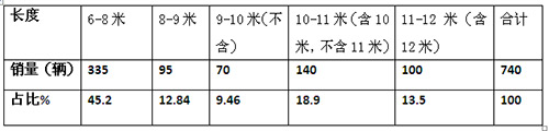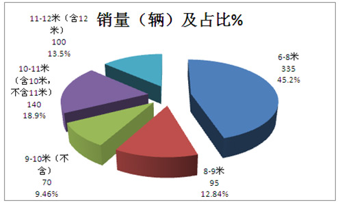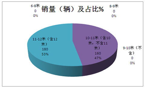 2、按长度段划分,对2015年1-8月山东区域新能源客车销量分析