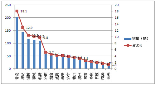 根据最新车管部门统计,山东17个地市2015年1-8月各地区新能源客车销量表
