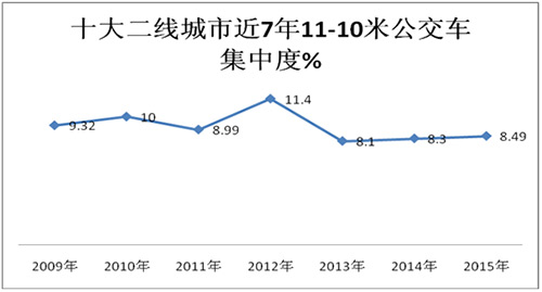 2015年前三季度哈尔滨等十大二线城市10-11米公交市场五大特点剖析