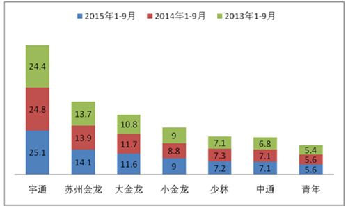2015年前三季度江苏等五大区域座位客车市场剖析
