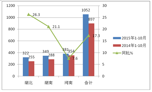 2015年1-10月华中地区9-10米公交市场特点剖析