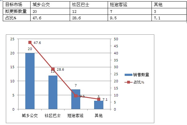 根据对该公司赵总的了解,得知该公司2015年1-10月对6-8米纯电动车的采购量为28辆,主要分布如下表
