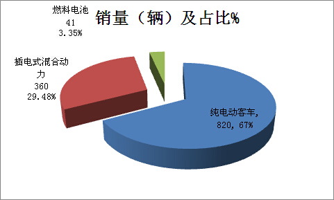 1、根据上牌数据统计,湖南区域2015年1-10月累计销售6米以上新能源客车1221辆,占据全国市场大约6.2%的比例,处于中原各省份销量之首(中原省份含河南、湖北、湖南等)。其中纯电动客车销售820辆,插电式混合动力客车销售360辆;燃料电池客车销售41辆。