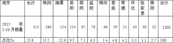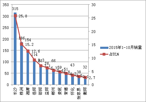 根据最新车管部门统计,湖南主要个地市2015年1-10月各地区新能源客车销量表