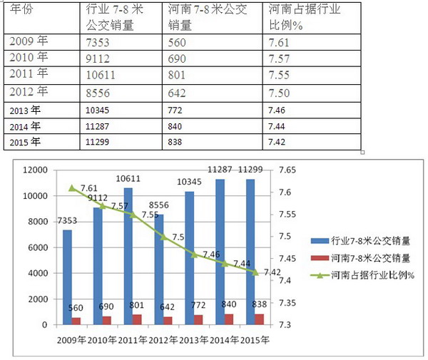 上图表已经表明,河南区域近7年1-11月以来7-8米城乡公交占行业比例逐年呈现下降,根据市场调研,其主要原因是: