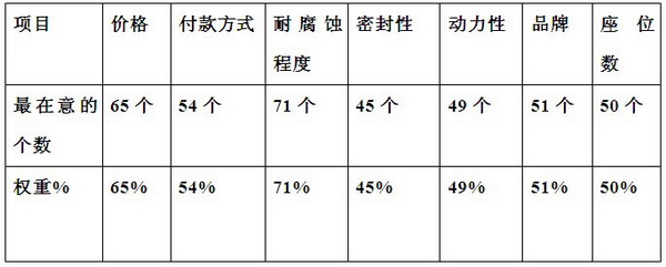 这次笔者在调研过程中,在几个租赁公司选取了100个团体客车司机和车主进行了抽样调查,主要是想了解他们在购买团体客车时对那些因素最看重,不一定具有普遍性,但至少能说明一些问题。具体统计如下(以100个样本抽查的结果统计):
