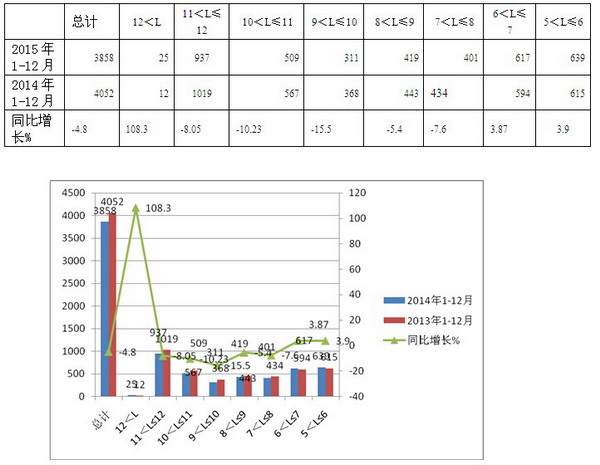 3、11-12米段是广东公路客车市场中需求最大的长度段产品,但处于下降状态,需求最小的是特大型客车,增幅最大。9米以上大型客车处于下降,7-9米中型公路客车处于稳中有降态势,7米以下轻客处于正增长。