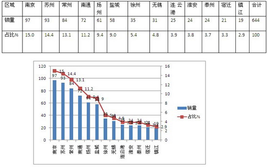 根据最新车管部门统计,江苏13个地市2016年1月各地区新能源客车销量表