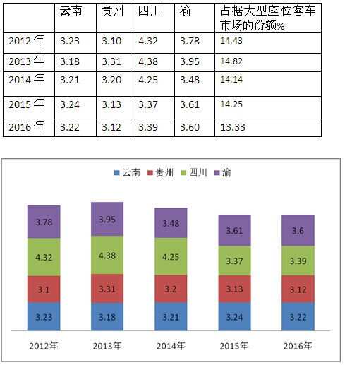 近5年云、贵、川、渝区域座位客车的市场规律,必然给座位客车企业制定营销策略、科学的分配营销资源、寻找利润来源提供了具体的量化依据。
