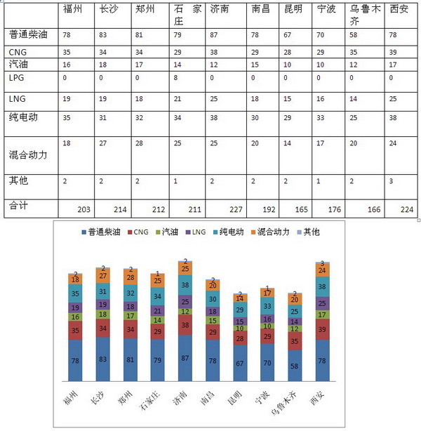 根据市场调研发现,福州、长沙、郑州等十大二线城市对10-11米公交的采购方式可以归纳为: