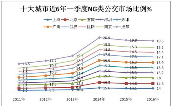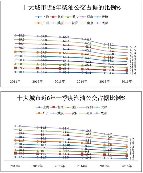 2016年一季度北、上、广、深等十大城市公交市场特点解析