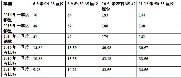 根据当地车管所数据显示,2016年1-3月,上海市场共计购买的10-11米团体车数量为193辆,为1-3月团体车市场主打车型。