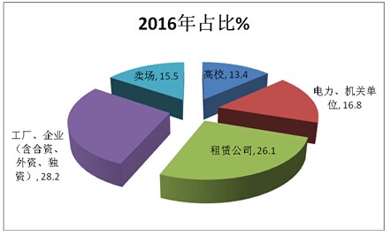 2、按长度段划分,从车管所上牌得知,2016年1-3月所购团体车销量比例分析如下: