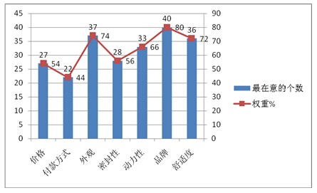 从上述抽查的样本结果得知:对团体车购买时,最看重的是品牌,其次是外观,再次是是适度。从此也反映了上海作为国际大都市与一些北方城市在团体客车购买行为特征方面的差异。这个团体客车企业在进入上海团体客车市场时,提供了一个具体的参考。