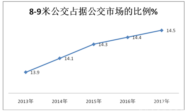 根据近5年的上牌数据统计,近5年1-7月8-9米公交占据公交总量的比例大致如下: