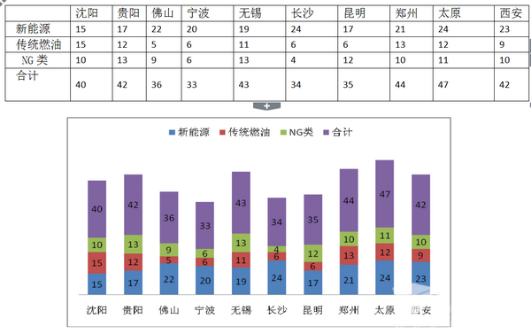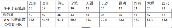 3、 东北区域的沈阳8-9米新能源比例最低,只有37.5%,主要原因是因为东北区域冬天气温过低,新能源公交客车在极低的气温环境中,无法启动运营,因此,8-9米新能源公交在十大二线城市中比例最低。
