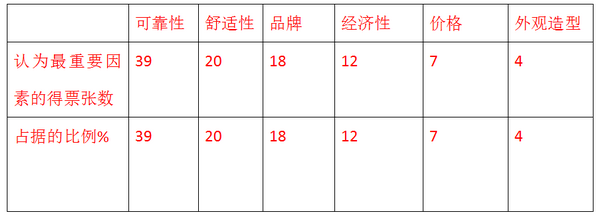 为了可了解和调研浙江区域目标客户在采购和使用高端客车最注重哪几个要素,笔者委托浙江区域销售经理于2017年8月底特地做了100份调查问卷,分发到杭州长运公司、杭州外事旅游公司、温州高速客运公司、宁波高速客运公司等几个重点用户,到了9月7日,100张问卷全部收回。根据统计整理如下表:
